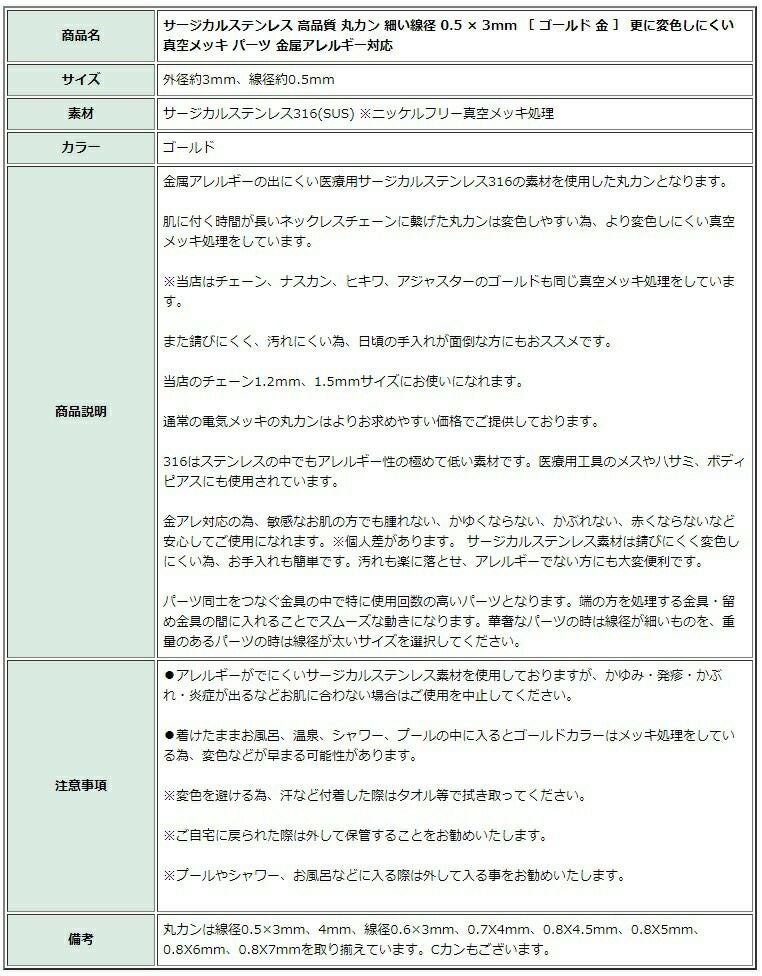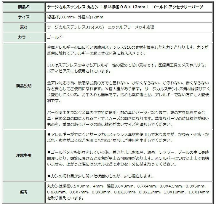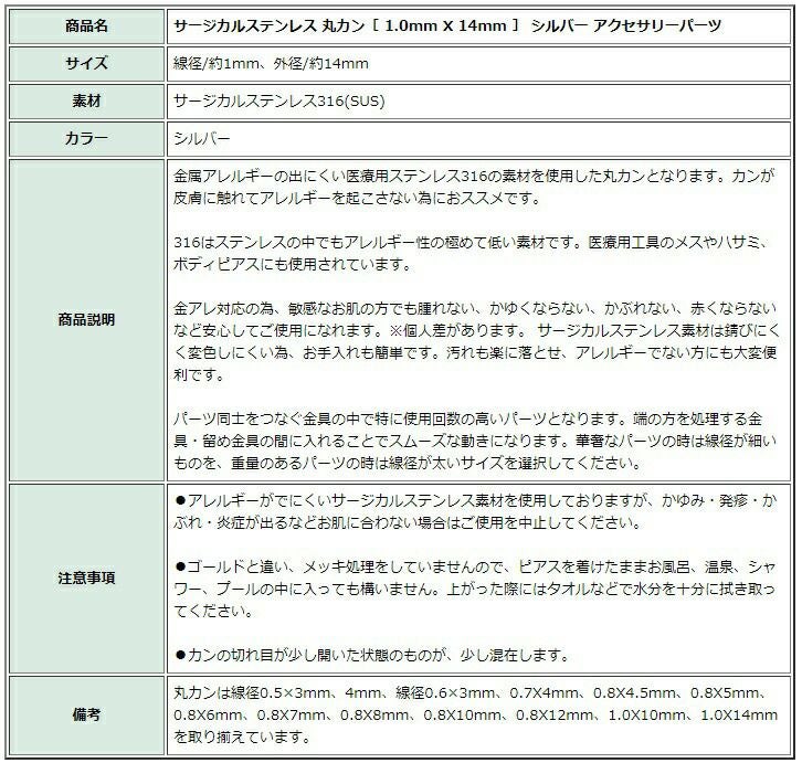 アクセサリー作りに欠かせない!ビーズやパーツをつなぐステンレス製 丸カン