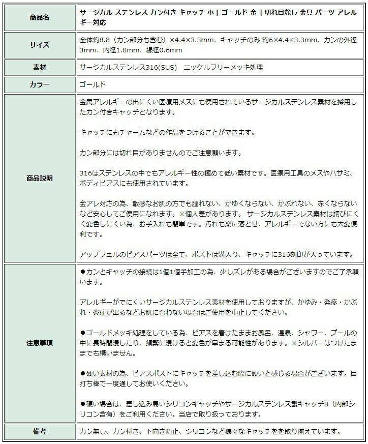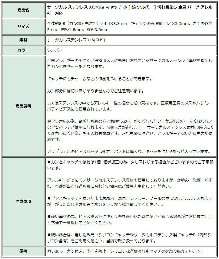 小さい線径のピアスポストには小さい線径専用のシリコンピアスキャッチがありますので滑り落ちたり、外れたりする危険性を防ぐことができます。