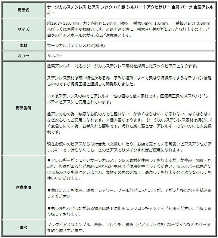 フックピアス・ピアスポスト一覧