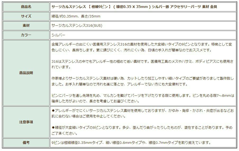 ステンレス製9ピン・ダブル9ピンはイヤリングやチャーム作りに
