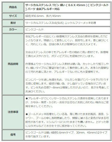 アクセサリーパーツやビーズ作品に最適なサージカルステンレス製Tピン