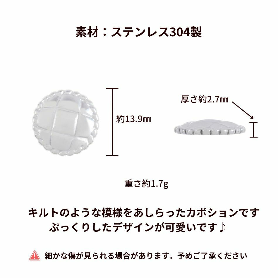 上品なデザインで且つ変色しにくいステンレス素材で長く使える留め具パーツ