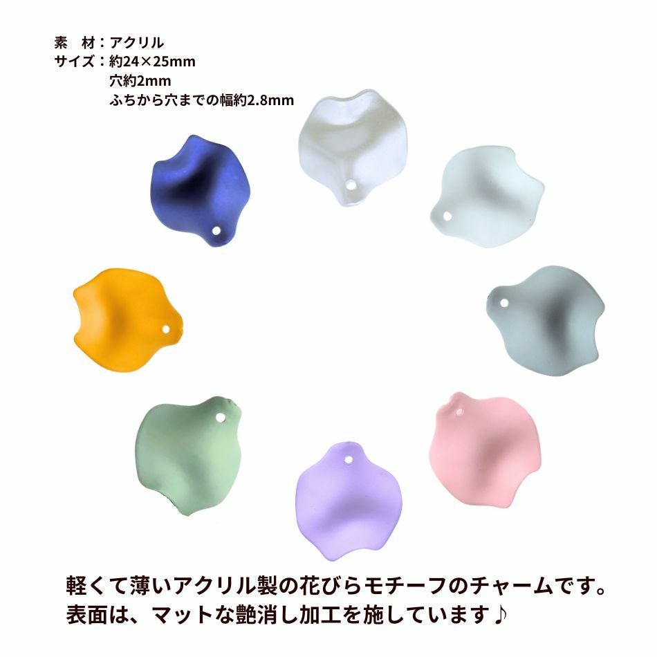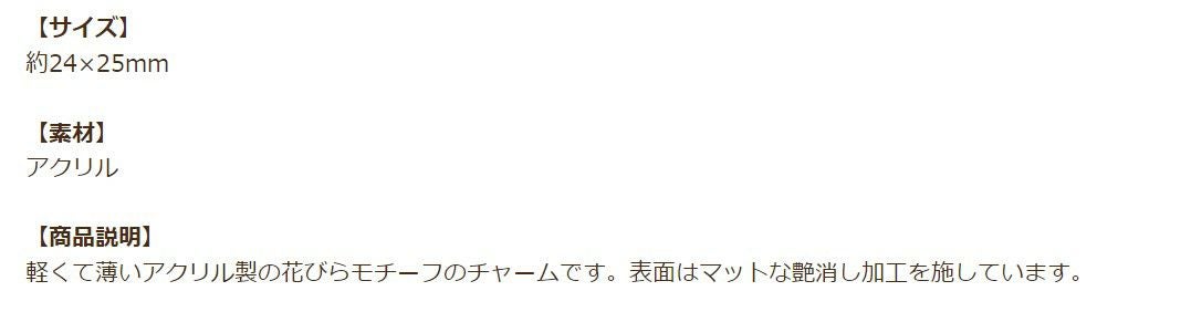 マスタードやラベンダーなど季節感を楽しめるカラーのアクリル製花びらチャーム