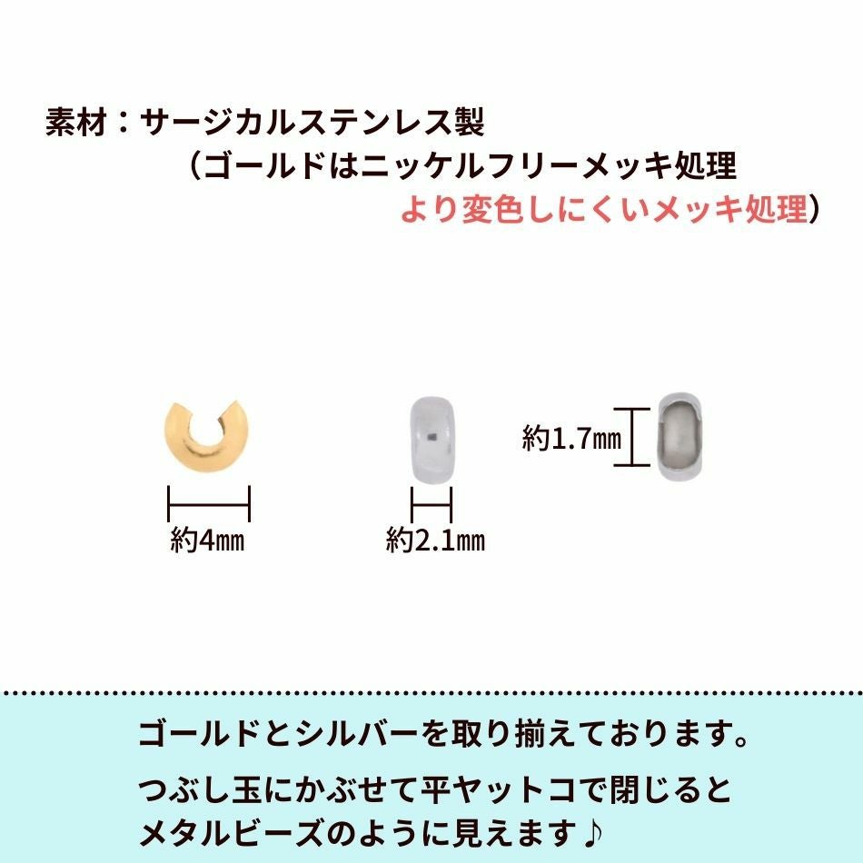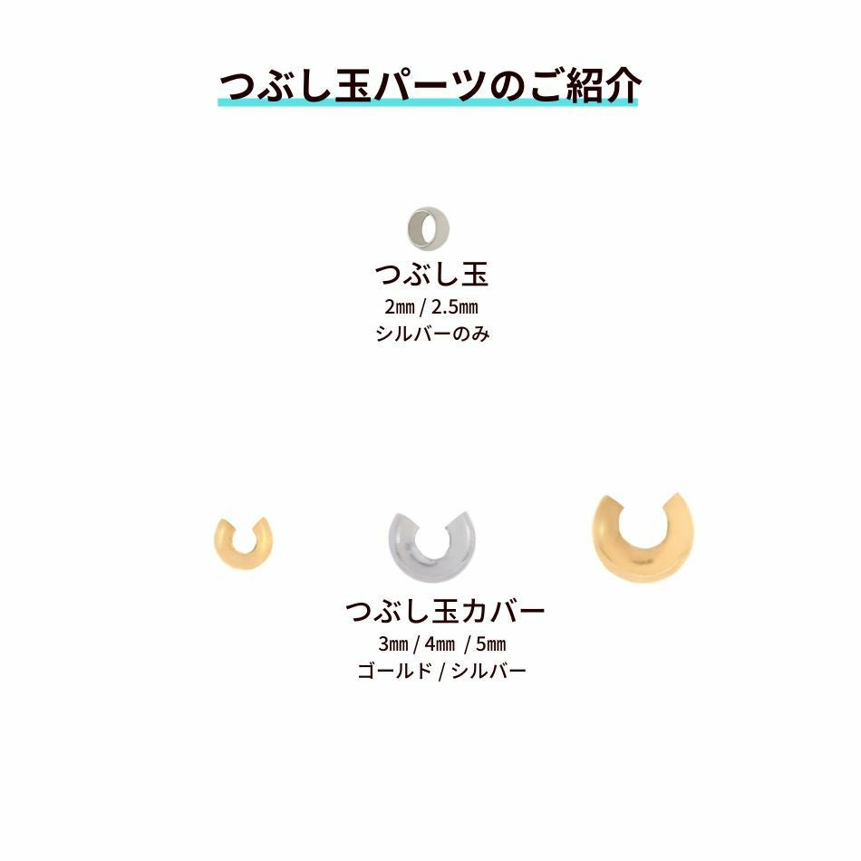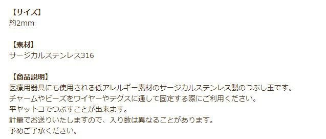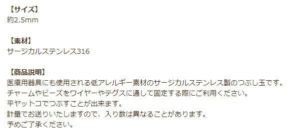 つぶし玉は平ヤットコでつぶして使います。ワイヤーやテグスに通したビーズを固定したり、先端の処理などにも使用します。
