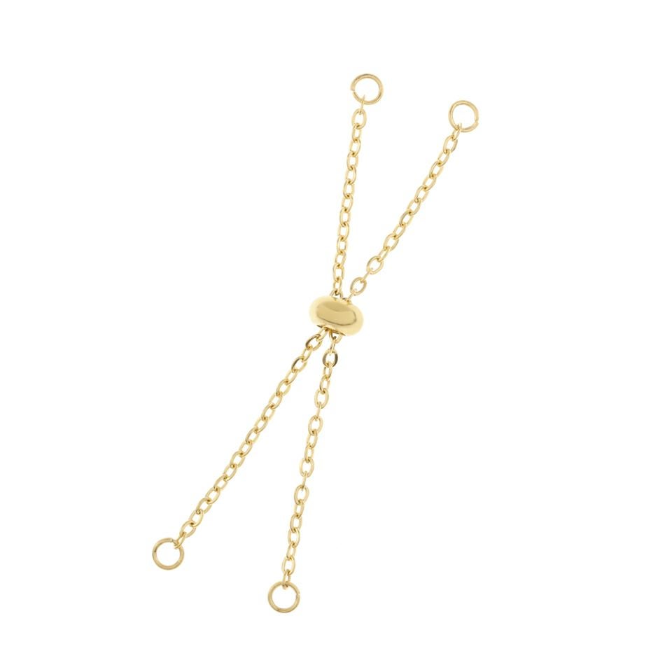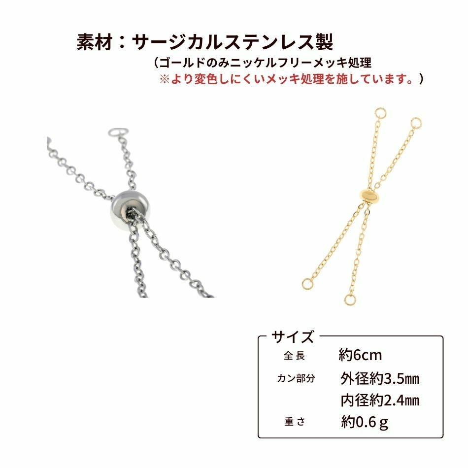 アジャスターチェーンはカニカンや引き輪とセットで使う留め金具です。ネックレスやブレスレットの長さの調節が可能です。一般的には5センチ程の長さで使われています。端にはドロップやハンド名作家さんの刻印が入ったプレートなどを付けることが多いです。