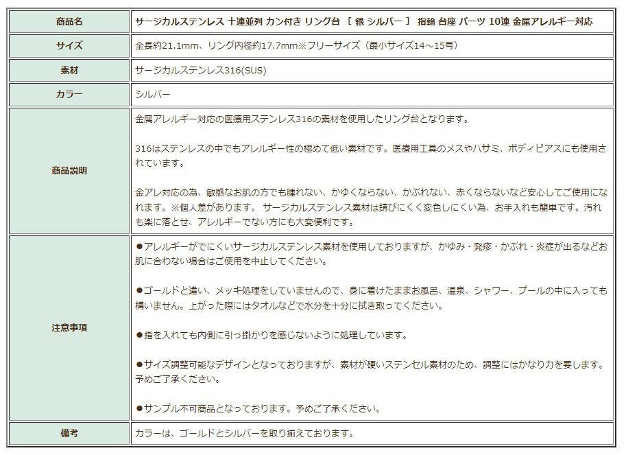 アレルギー対応のサージカルステンレス製アクセサリーパーツ