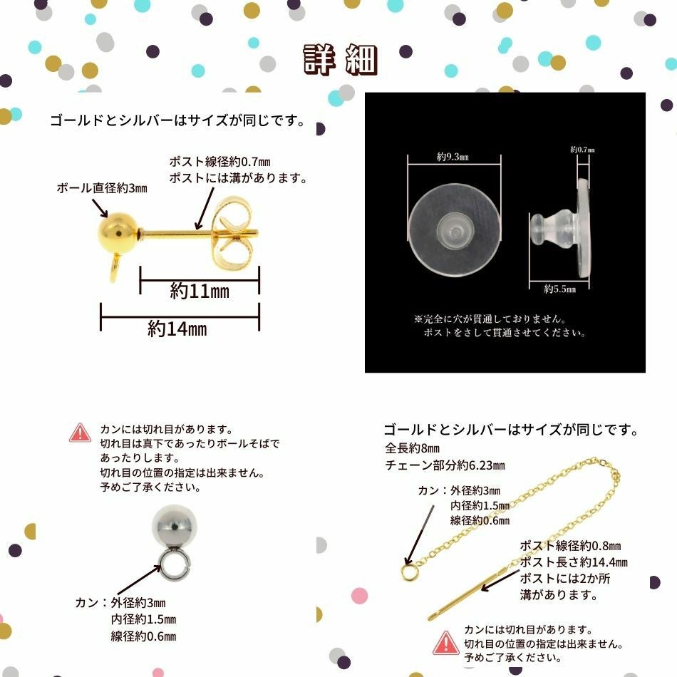 カンが付いたボールピアスポストは3ミリサイズが定番人気です。カンの向きが横向きと縦向きがある為