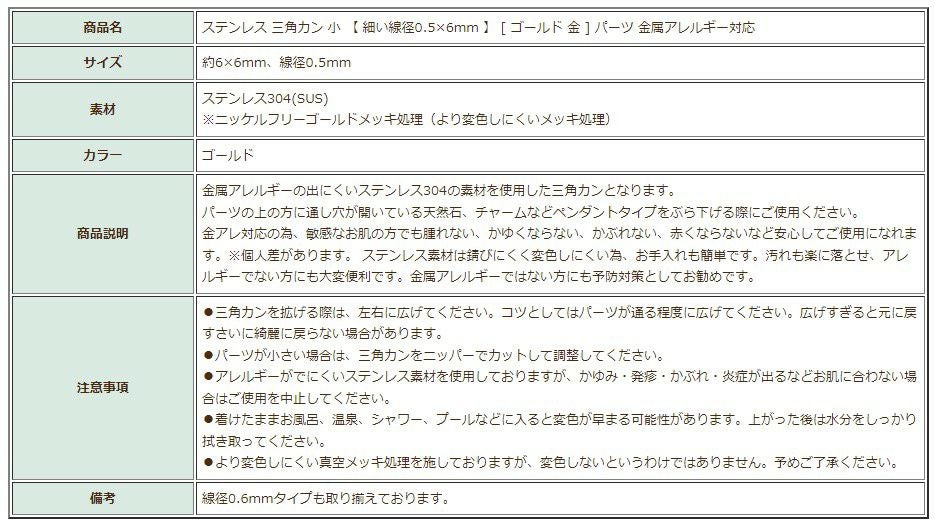 三角カンはドロップやスクエアのビーズなど丸カンやCカンでつながらない大きなパーツをつなげる時に使います。