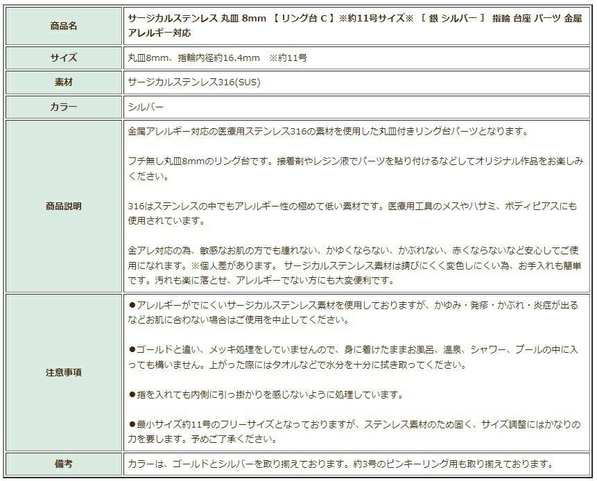 ピアスポストパーツは台座部分に加えてポスト部分も全てサージカルステンレス素材で製作しています。