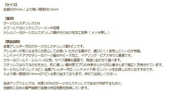 アップフェルは金属アレルギーの方でも安心してお使いいただけるサージカルステンレス素材のアクセサリーパーツをメインに扱っている専門ショップです。