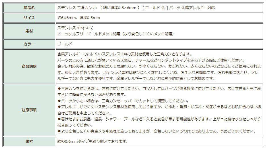 • cenizaさん ギラギラしているゴールドではなく落ち着いたゴールドなので幅広いビーズやパーツと合わせやすい。 ボールチップの部分がぷっくりしているので潰し玉が入れやすかったです。 自身は金属アレルギーでないですが、販売時にアレルギーのお客様に対応できるのが嬉しいです。 アレルギー対応なのにお値段も優しい。 ありがとうございました。
