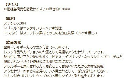丸皿も3ミリから5ミリサイズがあるのでハンドメイド作家さんの作品にぴったりのものを選ぶことができます。