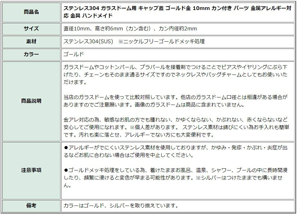 • cenizaさん ギラギラしているゴールドではなく落ち着いたゴールドなので幅広いビーズやパーツと合わせやすい。 ボールチップの部分がぷっくりしているので潰し玉が入れやすかったです。 自身は金属アレルギーでないですが、販売時にアレルギーのお客様に対応できるのが嬉しいです。 アレルギー対応なのにお値段も優しい。 ありがとうございました。