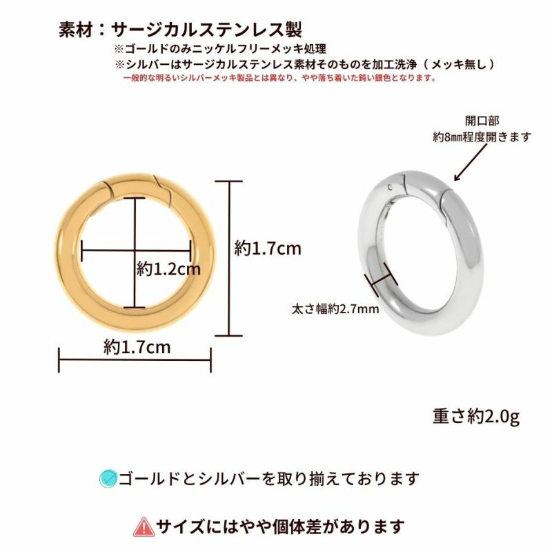 [1個]丸型 カラビナ 小 1.7cm 選べるカラー サージカルステンレス パーツ 金属アレルギー対応 キーホルダー 推し活 素材 カニカン M1-07