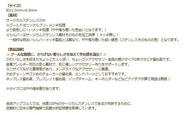 かわいらしさを抑えたちょっと大人っぽい、ちょいゴツアクセサリー金具の極小サイズS字カラビナ留め具です。