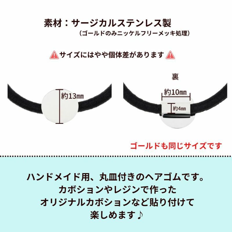 医療用器具にも使用される低アレルギー素材のサージカルステンレス製の丸皿付きヘアゴムです。