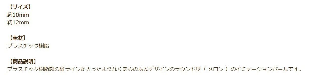 他の画像を見る ハンドメイド 手作り 手芸 材料 クラフト イミテーション [20個] 縦ライン プラパール 10mm [アイボリー] 樹脂 ラウンド メロン プラスチック アクセサリー 素材 パーツ 当店特別価格 ¥ 319 税込 在庫切れ 再入荷お知らせ お気に入りに登録する