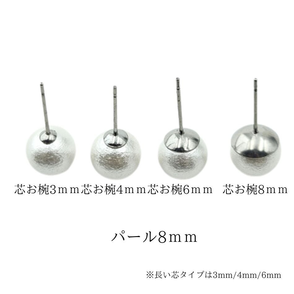 皿が付いたピアスパーツ(丸皿付きピアス)は小さい3ミリピアス、4ミリピアス、5ミリ、6ミリピアス、8ミリピアス、10ミリピアス、12ミリピアス、14ミリピアスがあります。ポストが長いピアスも準備しております。