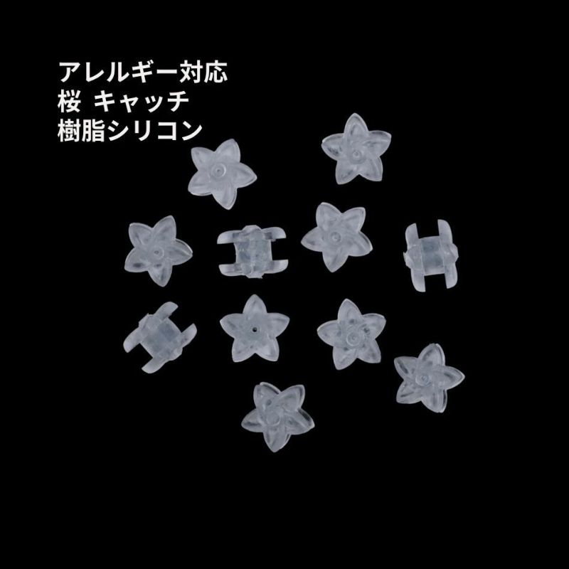 [10個] 樹脂 キャッチ 桜 [ クリア 透明色 ] シリコン パーツ ピアスポスト用 金属アレルギー対応 P2-03