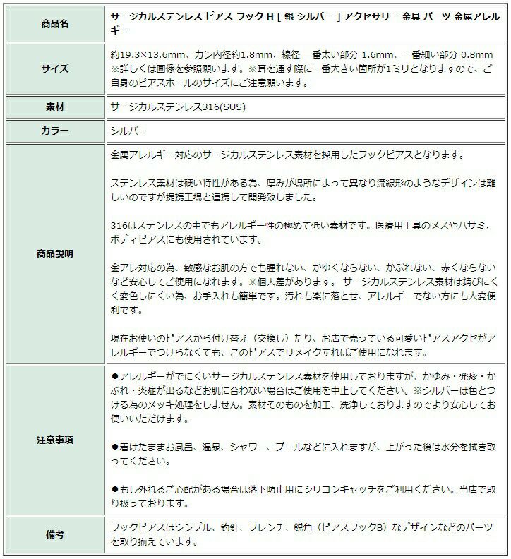 サージカルステンレス316 アレルギー対応 腫れにくい 金アレ