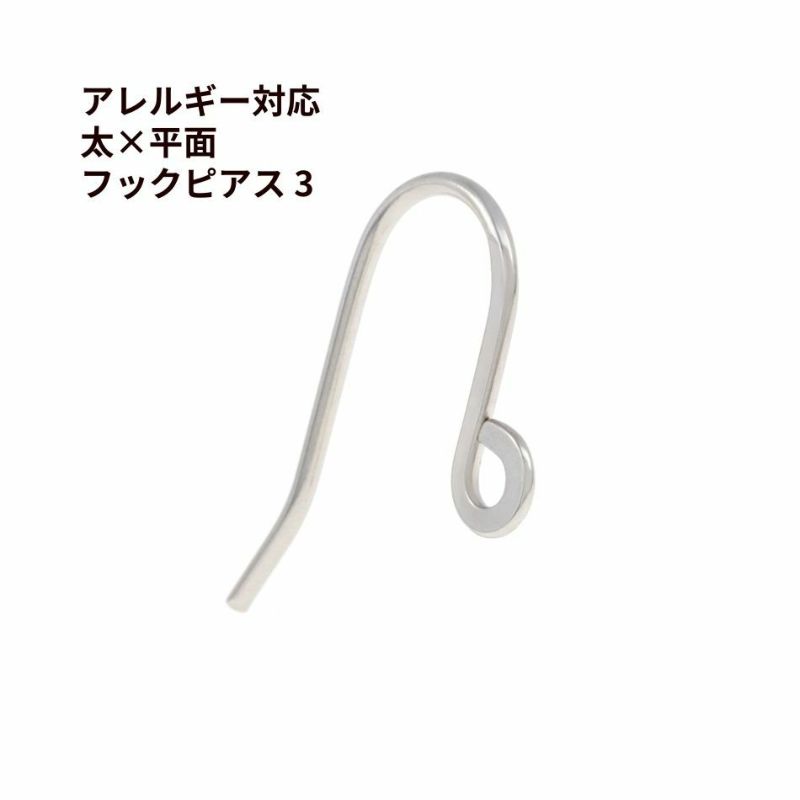 太 × 平面フック ピアス 3 [ 銀 シルバー ] サージカルステンレス 太い線径 1mm パーツ 金具 金属アレルギー 金アレ P3-05