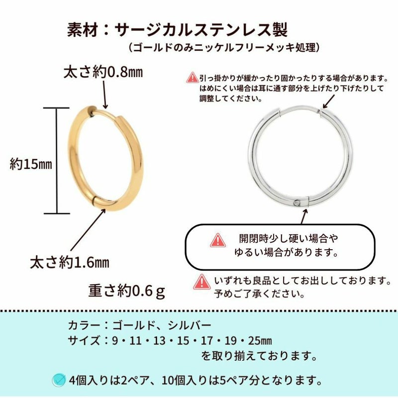 [10個] [ フープピアス ] C * 15mm *[ 銀 シルバー ]サージカルステンレス シンプル パーツ 金属アレルギー対応 P3-04