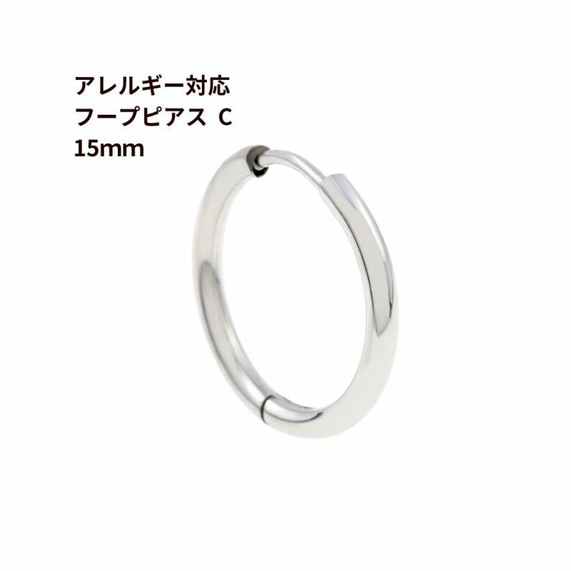 [4個] [ フープピアス ] C * 15mm *[ 銀 シルバー ] サージカルステンレス シンプル パーツ 金属アレルギー対応 P3-04