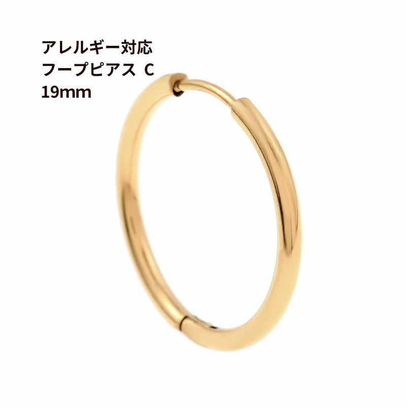 [10個] [ フープピアス ] C * 19mm *[ ゴールド 金 ] サージカルステンレス シンプル パーツ 金属アレルギー対応 P3-04