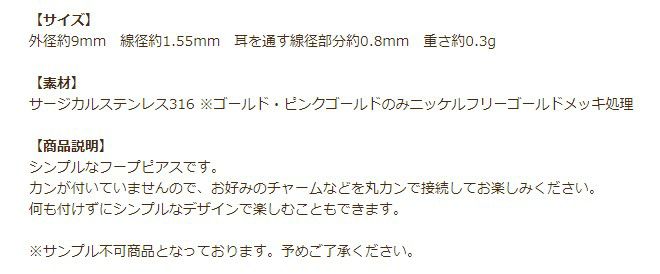 金アレ 316 素材 材料 金具 フープ アレルギー対応パーツ ニッケルフリー 敏感肌
