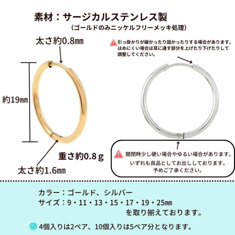 * 送料込み * [4個] [ フープピアス ] C * 19mm *[ 銀 シルバー ] サージカルステンレス シンプル パーツ 金属アレルギー対応 P3-04