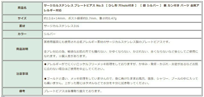 プレートピアスキャッチ付き