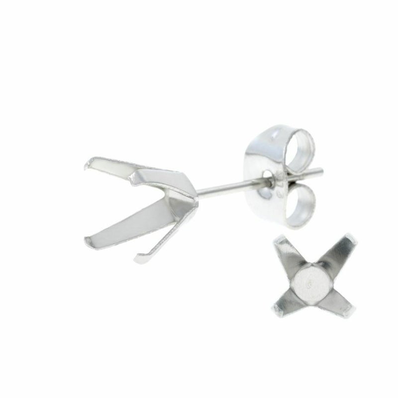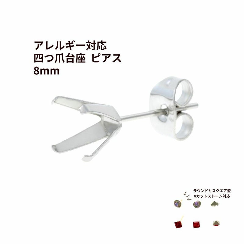[10個] 四つ爪 台座 ピアス 8mm [ 銀 シルバー ] キャッチ付き サージカルステンレス パーツ 石枠 爪留め 石留め 金属アレルギー対応 P1-06