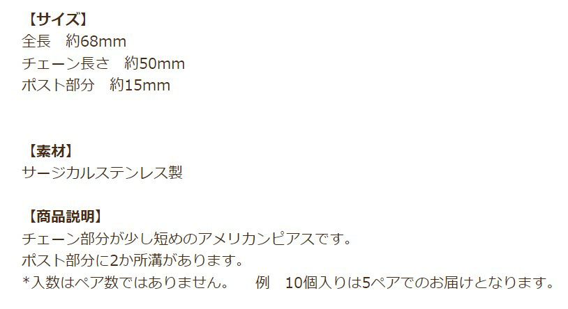 他の画像を見る 金アレ 316 素材 チェーンピアス ニッケルフリー 敏感肌 [2個] アメリカンピアス[シルバー銀]小豆チェーン サージカルステンレス パーツ 1.1mm 金具 資材 チェーンピアス ロングシルエット 当店特別価格 ¥ 399 税込 カートに入れる お気に入りに登録する