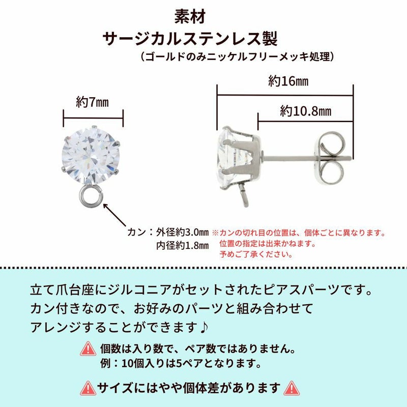 [4個] ヨコ向きカン付き ジルコニア ラウンド ピアス 7mm [ 銀 シルバー ] サージカルステンレス キャッチ付き パーツ 金属アレルギー 対応 P2-05