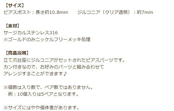 ピアスポスト:長さ約10.8mm ジルコニア(クリア透明):約7mm