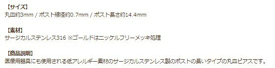 丸皿約3mm / ポスト線径約0.7mm / ポスト長さ約14.4mm