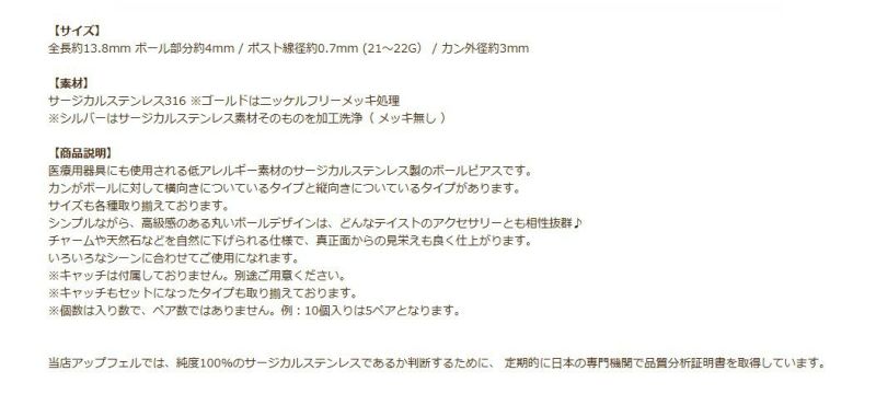 サイズ違いや縦向きカン付きボールピアス、関連商品はこちら