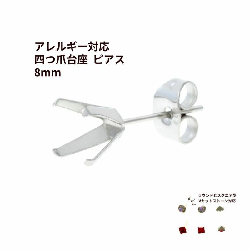 [20個] 四つ爪 台座 ピアス 8mm [ 銀 シルバー ] キャッチ付き サージカルステンレス パーツ 石枠 爪留め 石留め 金属アレルギー対応 P1-06