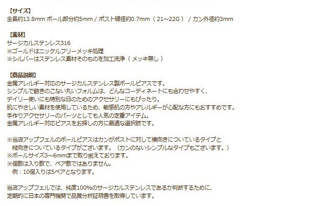 安心・安全な素材を用いたピアスポストで安心という喜びのお声を多数頂戴しております。