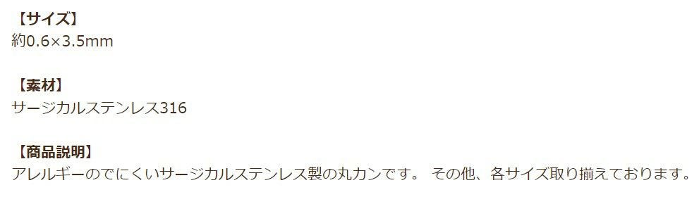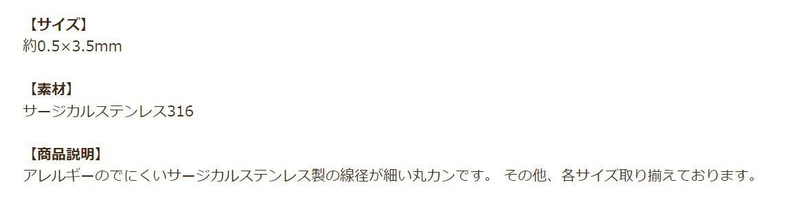 他の画像を見る 金アレ 316 素材 材料 ニッケルフリー 敏感肌 接続金具 マルカン * 送料込み * [50個] [ 丸カン 細い 3.5mm ] [ 銀 シルバー ] サージカルステンレス 細い線径0.5mm CA-01 パーツ 金属アレルギー対応 送料込み 当店特別価格 ¥ 449 税込 カートに入れる お気に入りに登録する