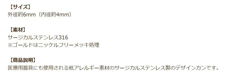 他の画像を見る 金アレ 316 素材 材料 ニッケルフリー 敏感肌 [100個][ 丸カン 極細 2mm ] [ ゴールド 金 ] サージカルステンレス 極細線径0.4mm 接続 アクセサリー 金具 パーツ CA-01 当店特別価格 ¥ 561 税込 カートに入れる お気に入りに登録する