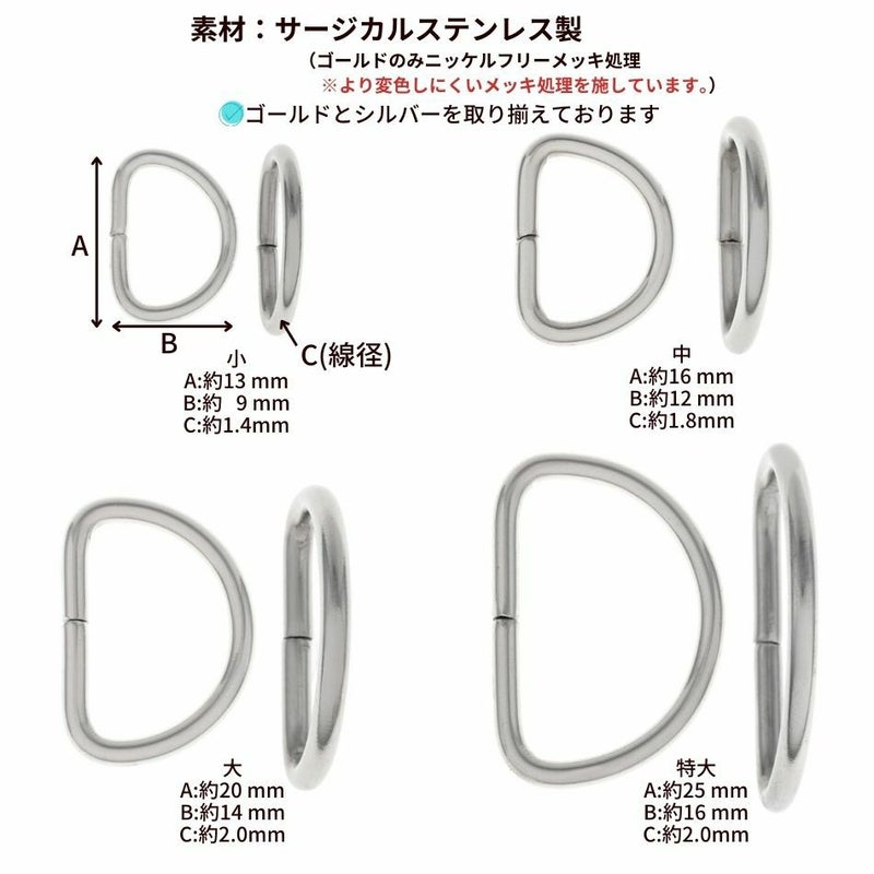 医療器具にも使用されるアレルギーを起こしにくいサージカルステンレス製のDカンです。