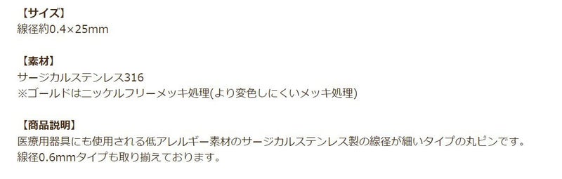 極細 たまぴん 丸ピン ( 線径0.4 X 25mm ) [ ゴールド 金 ] サージカルステンレス デザインピン パーツ 金属アレルギー対応 PI-03