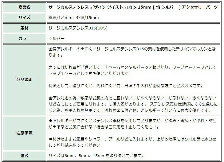 [10個]デザイン ツイスト 丸カン 15mm [ 銀 シルバー ] サージカルステンレス CA-03 アクセサリーパーツ