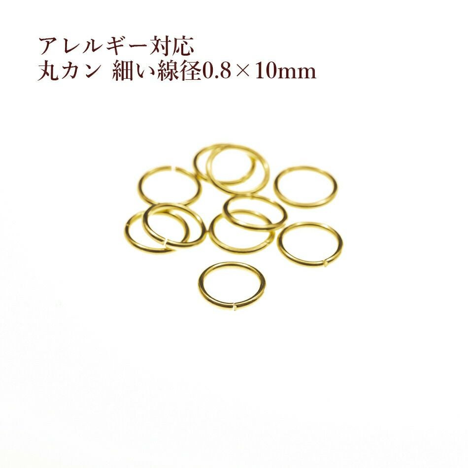 [100個] [ 丸カン 8mm ][ ゴールド 金 ] サージカルステンレス 線径0.8mm アクセサリー パーツ 金アレ CA-01