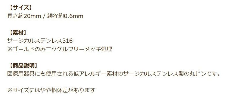 丸ピン (0.6 X 20mm) [ 銀 シルバー ] サージカルステンレス 玉ピン パーツ 金属アレルギー対応 PI-03