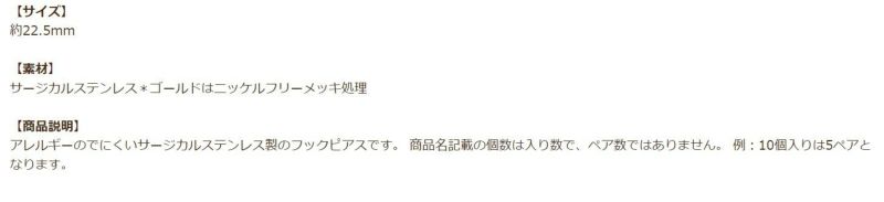 サージカルステンレス*ゴールドはニッケルフリーメッキ処理