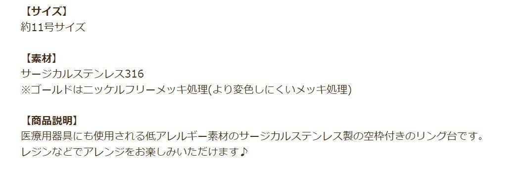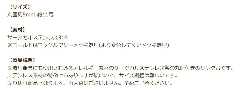 金アレ 316 素材 材料 ニッケルフリー 敏感肌 指輪 リング台