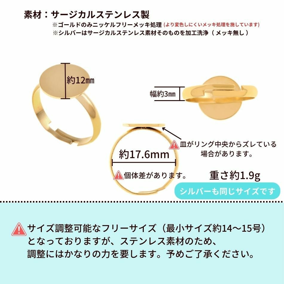 かぶれや皮膚トラブルのリスクを軽減するステンレス指輪の台座パーツ多数!