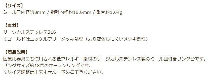 [10個] 8mmミール皿付き リング台 [ 銀 シルバー ] サージカルステンレス O-02 指輪台座 台座 パーツ 金属アレルギー対応